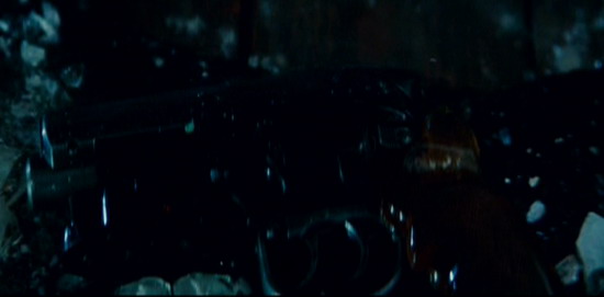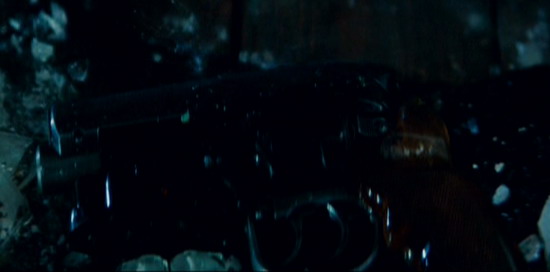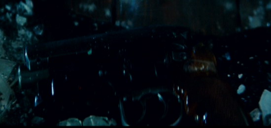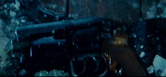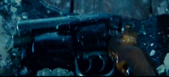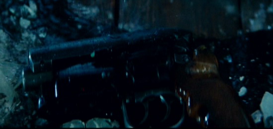 For what it is worth, and I am no expert and although I don't have an HD version of the film, I thought that they appreared to be on in the scene where the gun is dropped. _________________ Look out at the shattered weeping millions,
