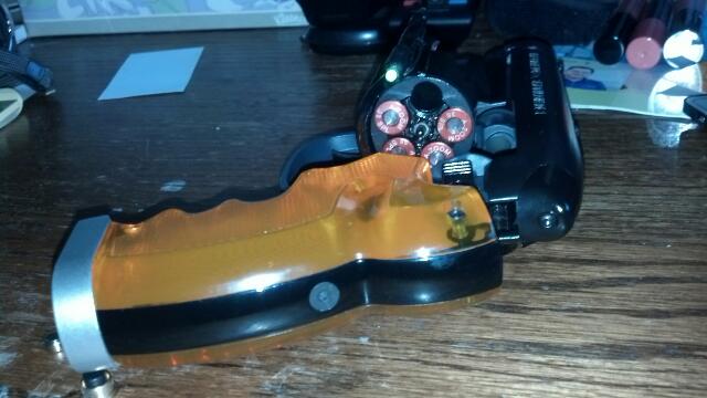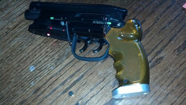 Hey everybody! Not too big a deal and I'm sure that some of you have thought of this idea already but, I just purchased a .38 caliber bore sight round for my Off World which adds some weight and is a cool addition to the blaster. For those of you who don't know what this is, it is a round that goes in the chamber that has a laser sight in it to help you align your sights on a pistol. it puts a red laser dot where you aim the weapon...it's kindaa fun and i tought that you all might dig the idea..I'll try to add somephotos of mine both out of the chamber and in action for you all tomorrow...til then, Cheers! |