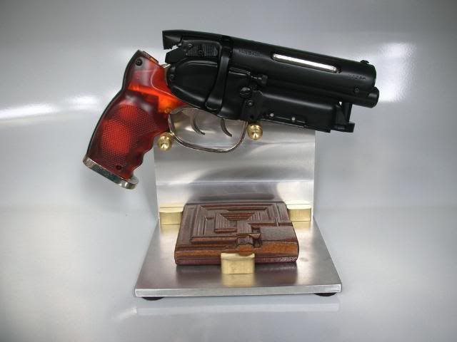 I've been working on designing a blaster stand worthy of the famous Blade Runner blasters. With the amount money folks are spending on the blasters I thought there might be a few who felt that a high end prop gun deserved a high end stand.