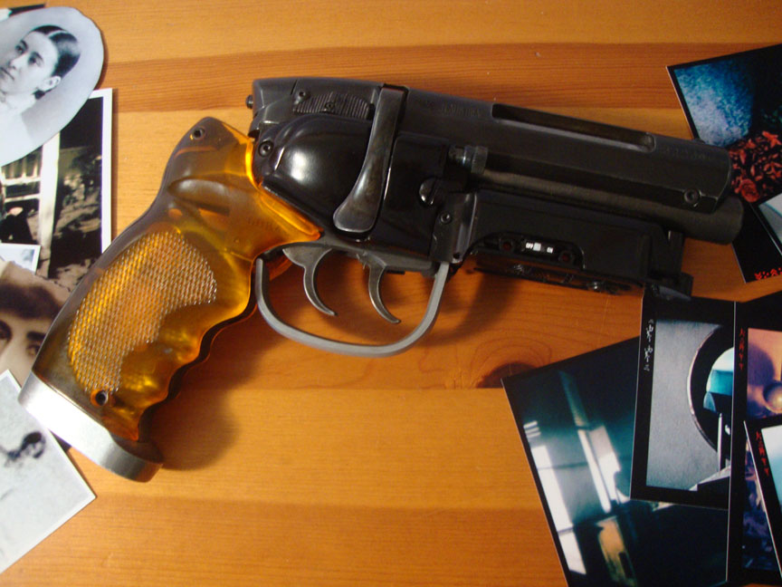 I don't know man... mine seems to shoot real bullets just fine; a .full tilt .44 special 200 grain bullet going down the pipe doesn't seem to be an issue. But some of the doo-dads that stick out could be an issue-- the fake "laser" sight on the left side and the forward facing knob on the right. I've fixed the forward facing knob with internal steel reinforcing. Re the fake sight, I steel riveted mine into the *top* left side of the pewter Steyr receiver just above the cylinder shroud, it is NOT attached to the left cylinder shroud like the original prop, where it would surely wreck a pewter gun. The fake cylinder also has a copper tube in its center, so I don't think that puppy will go anywhere. That's one failure point for a pewter shroud I think I correctly assessed in advance and circumvented. But if the holster screws up something, those are the only possible two things. The structure is pretty well stabilized by having an actual steel/aluminum Bulldog pistol inside for attaching things to. For example the Steyr receiver screws right into the Bulldog's steel top strap. The decorative pewter grip cover screws directly into the Bulldog's aluminum grip frame, and at five points! The right side Steyr cylinder shroud screws into the steel frame. The left side Steyr cylinder shroud screws into the Bulldog's steel cylinder swing arm. The plastic Steyr magazine is secured to both the barrel's ejector rod cover as well as the steel leading edge of the Bulldog frame. Go back and have a look at my original post's photos. It's pretty strong.