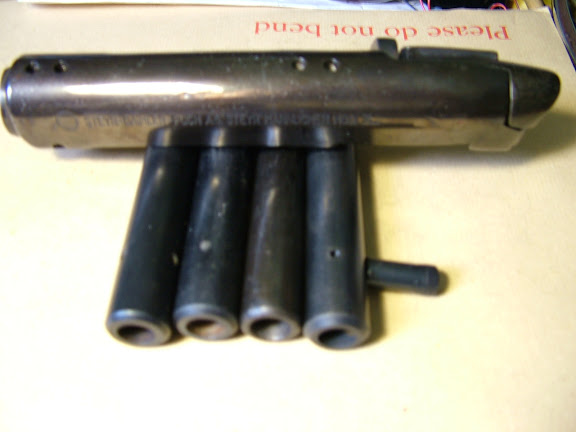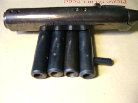 Just to let you know - only one of the barrels is properly gun blued steel, the first one the left in the pictures , all the other's are Parkerized the exceptions being the pewter ones are plated nickel as is the receiver first then 'Parkerized' close examination will reveal which is which especially at the other end of the barrel - but in general you can't tell then apart - I think a drink is in order - sucess !!