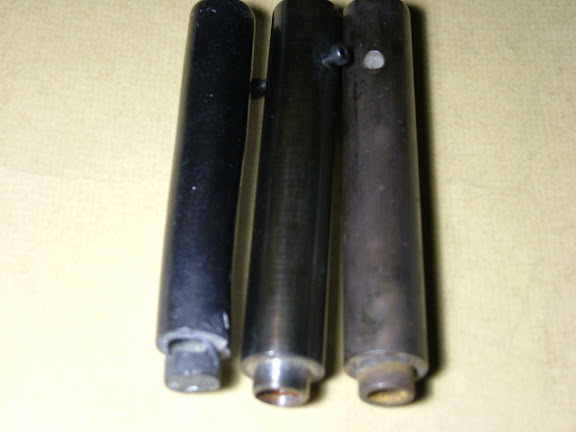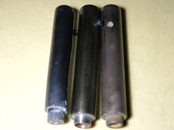 I gunsmith blued the clean steel one ( shown in the middle) then plated and 'pewter blacked' Rich's (right side) , them I plated blued and weathered the other Mspaw's (left side) seeing them side by side you can see both the differences and simularities , I'm going to 'Parkerize' some pieces this weekend, so I'll post sample photos, when I'm finished