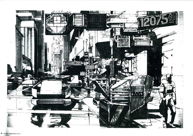 I have a couple pictures from the "LA 2015" street scene in my Syd Mead Studio Image book. I think you are right. I would love to see more of these pictures too. It sounds kind of like a Blade Runner rip off. I am surprised I never really heard that much of it before.