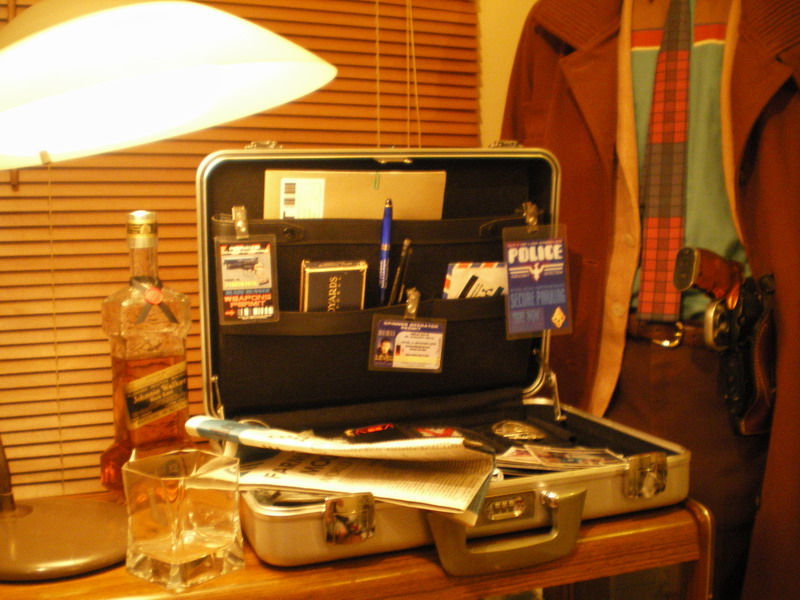 well done mate ... those bad boys aint cheap! even the used and beat-up ones! i scoured the web for about 2 years with an arbitrary and unrealistic max for $100 - and it only took me 2 years to get mine. this was one of those props that got me more interested in the actual item so then the search took on a whole life of its own. i decided that i would likely not find Deck's exact model or could not afford it and i began searching for a Zero slim line. i try to use as many of my props as possible (i have the FLW Ennis tile tables, glasses, bottle, briefcase, working dazor, etc.) and decided the slim line would be easier for me to carry to work everyday and it houses all of my junk (most importantly my laptop) with out an inch to spare.
