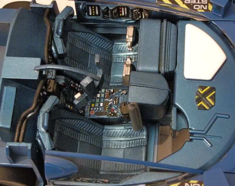 I looked at all of Offworld66's pics from when he did his conversion and really liked the way the Tamiya metallic blue looked. So I used the same color. All of the interior pieces were airbrushed separately before assembly to make detail painting easier.