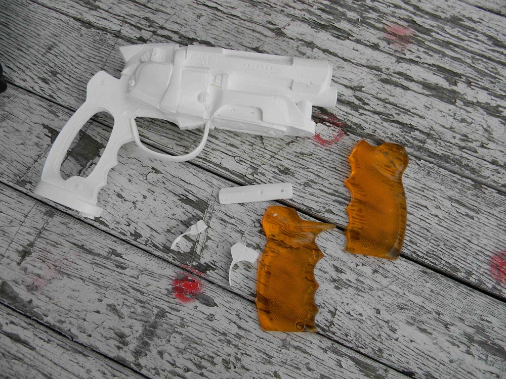 You may have seen these kits around. they're a very poor recast of a recast of what I think was a Rick Ross Magnum. It comes as a single lump of resin with grips and triggers to be attached. It was full of bubbles and pitted areas as well as a lot of misshapen lines.