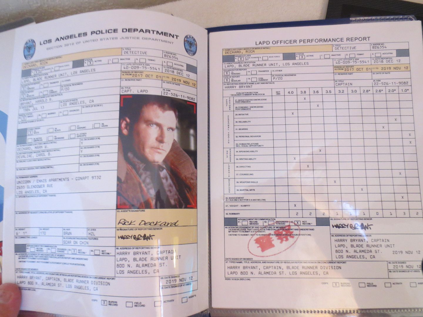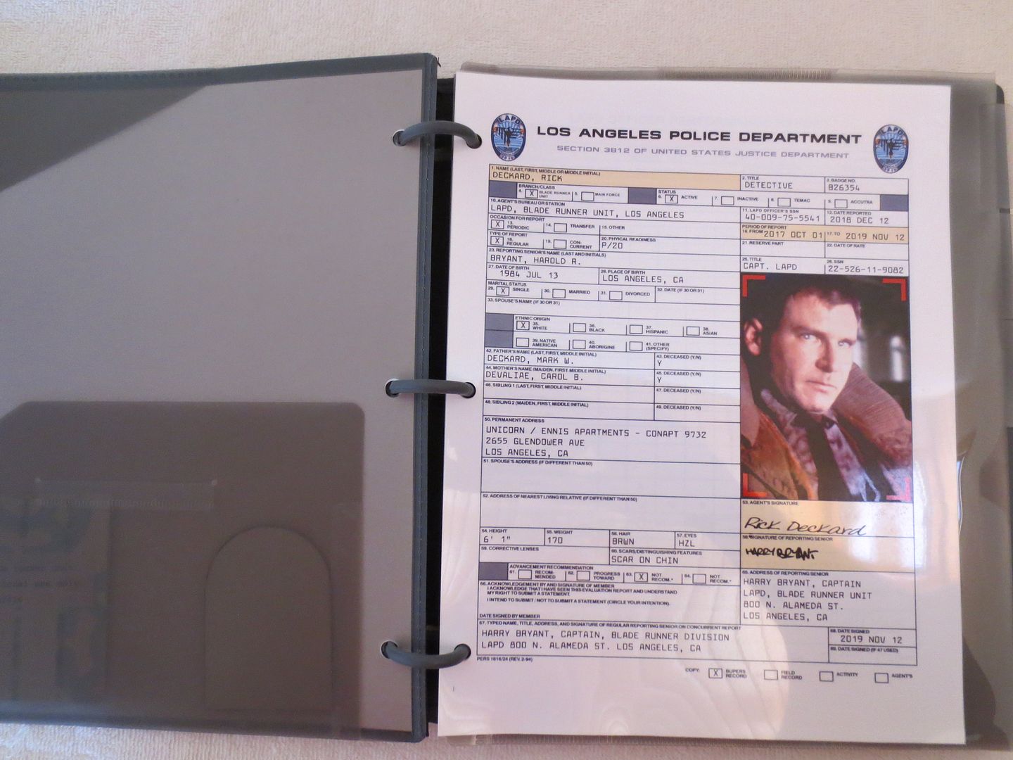 A 6 page LAPD File/Record report on Deckard