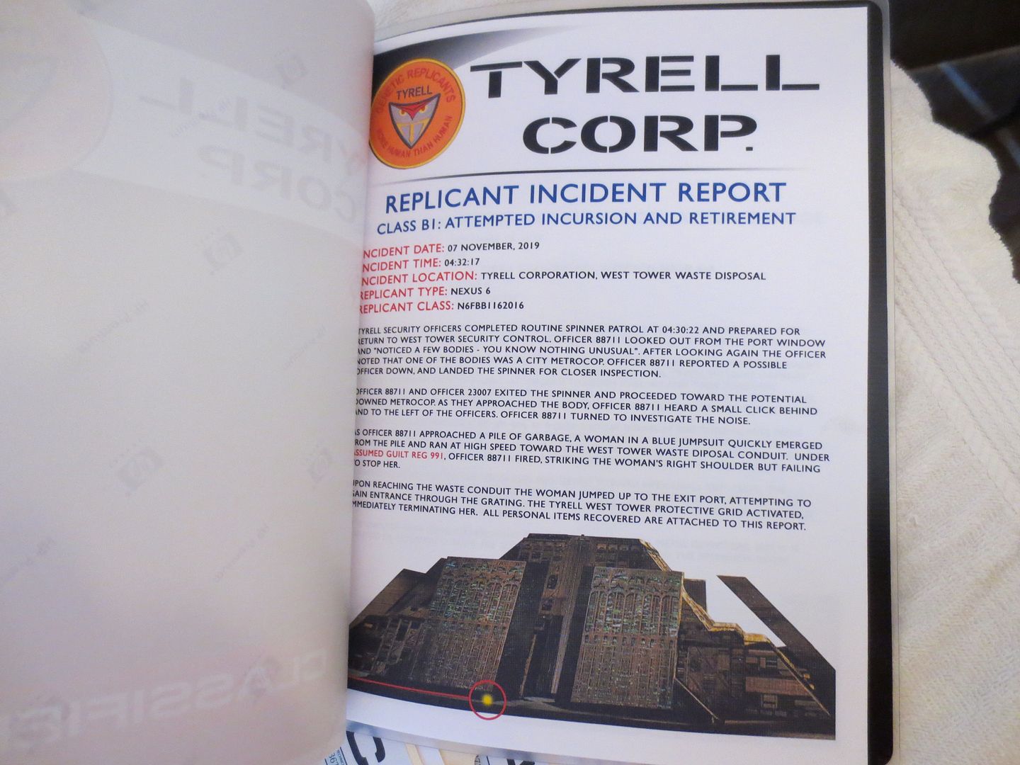 A 4 page report on the Replicant groups attempted incursion into Tyrell