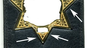 On our issued police badges, the badge maker showed me how they attach the badges to the leather: