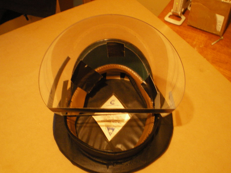 Quote: | Also, a pic of the interior of the Police hat (to understand how the face shield and interior glasses were mounted inside would be great... |