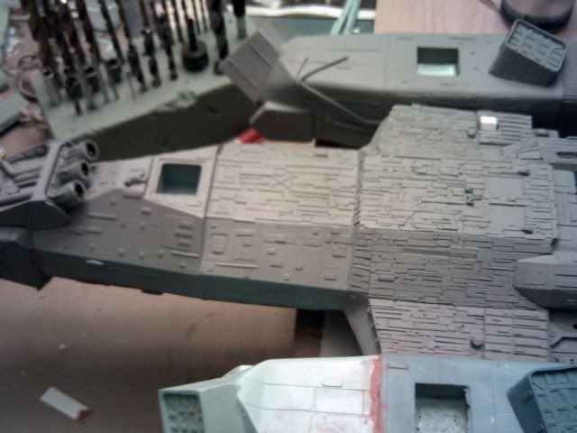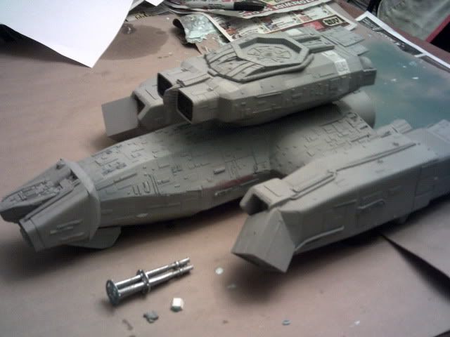 Well guys I think I am gonna cry.. This very cool model has been sold. It is the original one I started on this thread, I had built it for myself actually to be displayed on a mirror with all the super-detailing on the bottom.. But a fellow up in Canada wants it, and I am going to knock it out in 30 days.. to those people who have bought my kits, there will be plenty of reference pics here for you to finish the ship.