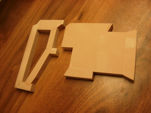 With my key I only got as far as making the former. Rather than go down the laser cut path (which was an option) I decided to make this one by breaking down the key into simple shapes. I machined up blocks of chemical wood to those shapes and super glued them together (pictured below).