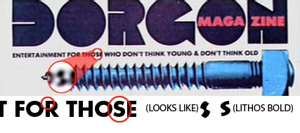 Returning to the DORGON cover, that mystery subhead remains in question. I agree that a version of Futura Bold seems the best fit, but with time that may be proven wrong as well, with its obvious character anomolies.