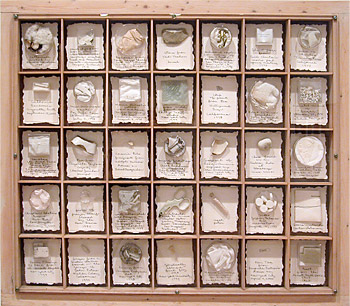 Barton Lidice Benes. He would create tiny museums in a grid format that would contain the most curious, even bizarre artifacts. Part of the fun was to read what the item was and where he found it.