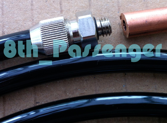 Master Blaster I found the correct threaded fitting. BSP 3/8" left hand thread. The description says it has a 4mm tail but its more like 6mm (just short of 7mm at its widest point) with an internal bore of 3mm.