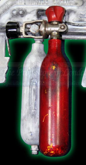 We can see it best in these photo's of Harry Harris'. Note how the neck of the white tank is about half the length of the neck of the red tank. This raises the white tank 'up' so the fitting on the bottom of the white tank is is almost level with the bottom of the red tank.