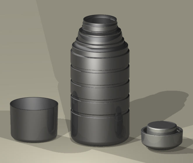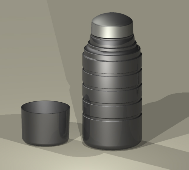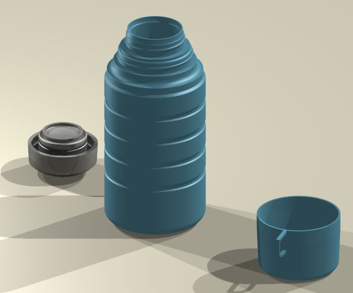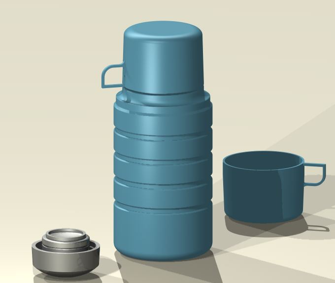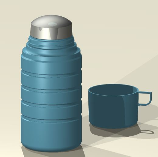 If I did make it as a physical object it would be good to have the thread for the lid and cup. So maybe the top section of the thermos and the lid could be a 3D print. The cups sometimes just clipped on with a small ridge!. The cup could be a vac form with a handle applied. The bulk of the Thermos could be a turning.