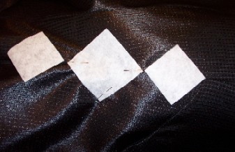 The medallions on the suit are pretty much what will make or break this one, like the collar on Deckard's coat. I started off by cutting squares in various sizes out of interfacing and playing with them until I was happy with the size and placement. Once I had that down, I used the squares as a base for the medallion fabric, a similar process to paper piecing. The interfacing base allows the edges to be nice and crisp.