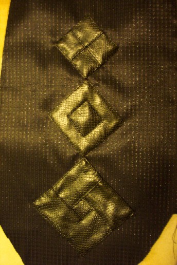 Because of the shot in the fabric, you can see the grainline where I lined up the diamonds. Pretty simple, just line em up and stitch em down. To keep the fabric from dimpling, I have interfaced everything. You can see on the reverse where I topstitched, which gave a cool dimensional affect.