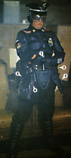 I'm sure that many cops outfits had been made by the costume dept. As we know, the hero costume is always different than the ones you'll see in the crowd scene (no need for fancy gloves or calculators)..then again, different sectors, different outfits; the sky is limit  |