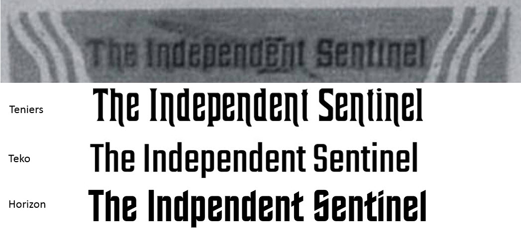 So, I've done some digging on Prop Summit and a few other places and I think I've managed a reasonable version of the English side of The Independent Sentinel. I got Teniers and I've substituted a Eurostyle S for the masthead. Still needs some tweeking though.