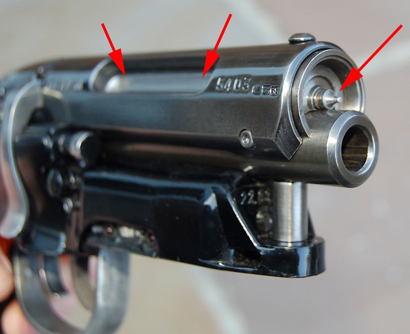 Above is a pic showing the part of the bolt rod assembly that shows through the Steyr's port.