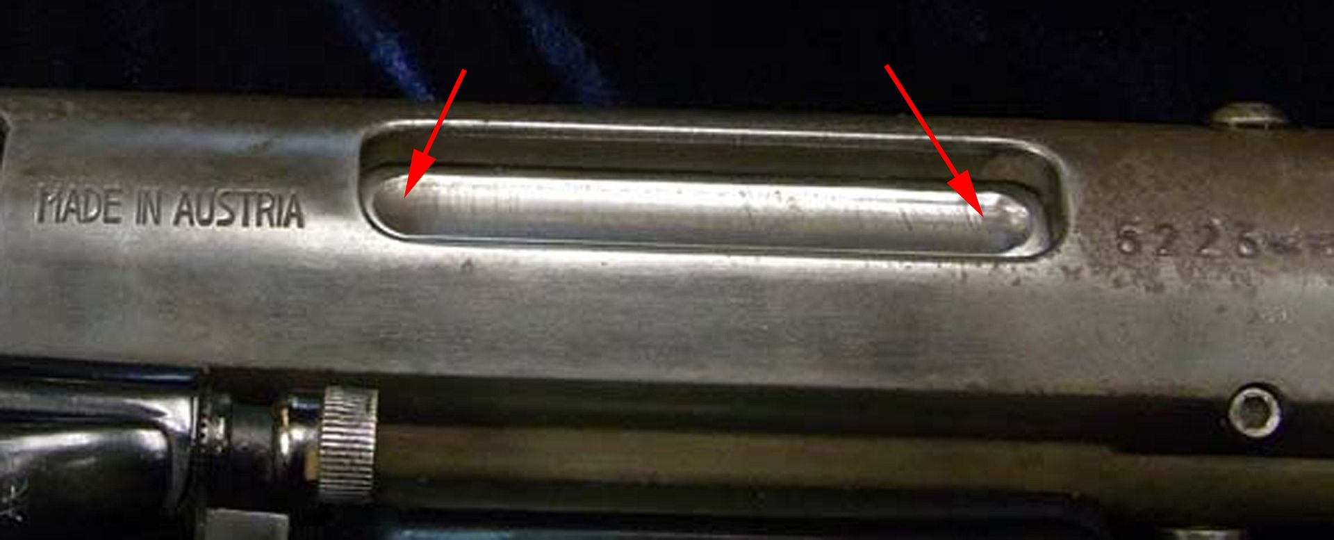 When the bolt handle is lifted, this is what is revealed through the Steyr port. |