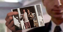 Edit: I am looking at a higher res image of the photo I printed out a while ago, and am looking for the digital file now. In this one I can see more clearly the shadow of his thumb on her dress and the lines on the left part of the circle and middle part to be clearly part of his sleeve and her collar with shadows, and the part on the right upper part looks much less circular, but still not sure where it comes from. |