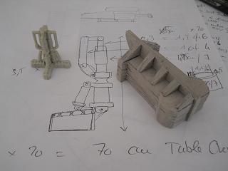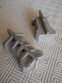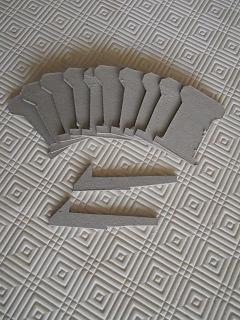 Here are my first cuts on the first foot... ten time the same shape to create the thickness.Then detailing the top with smaller cardboard parts... and repeating three times for the others feet.