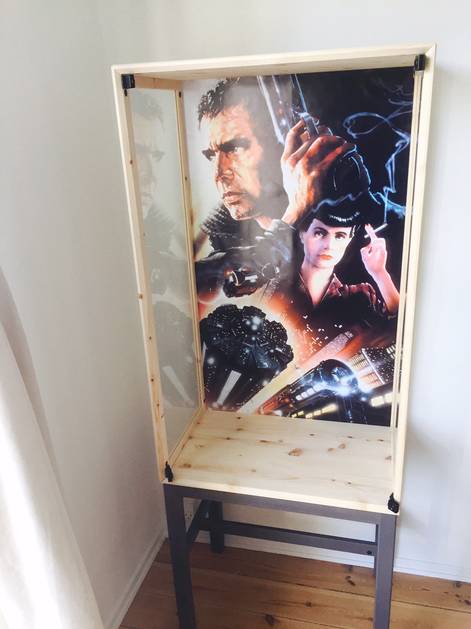 Just wanted to share with you my new prop cabinet!! I'm still putting it together, it's an Ikea Nörnes Vitrine with the movie poster fitted in the background It will be great!